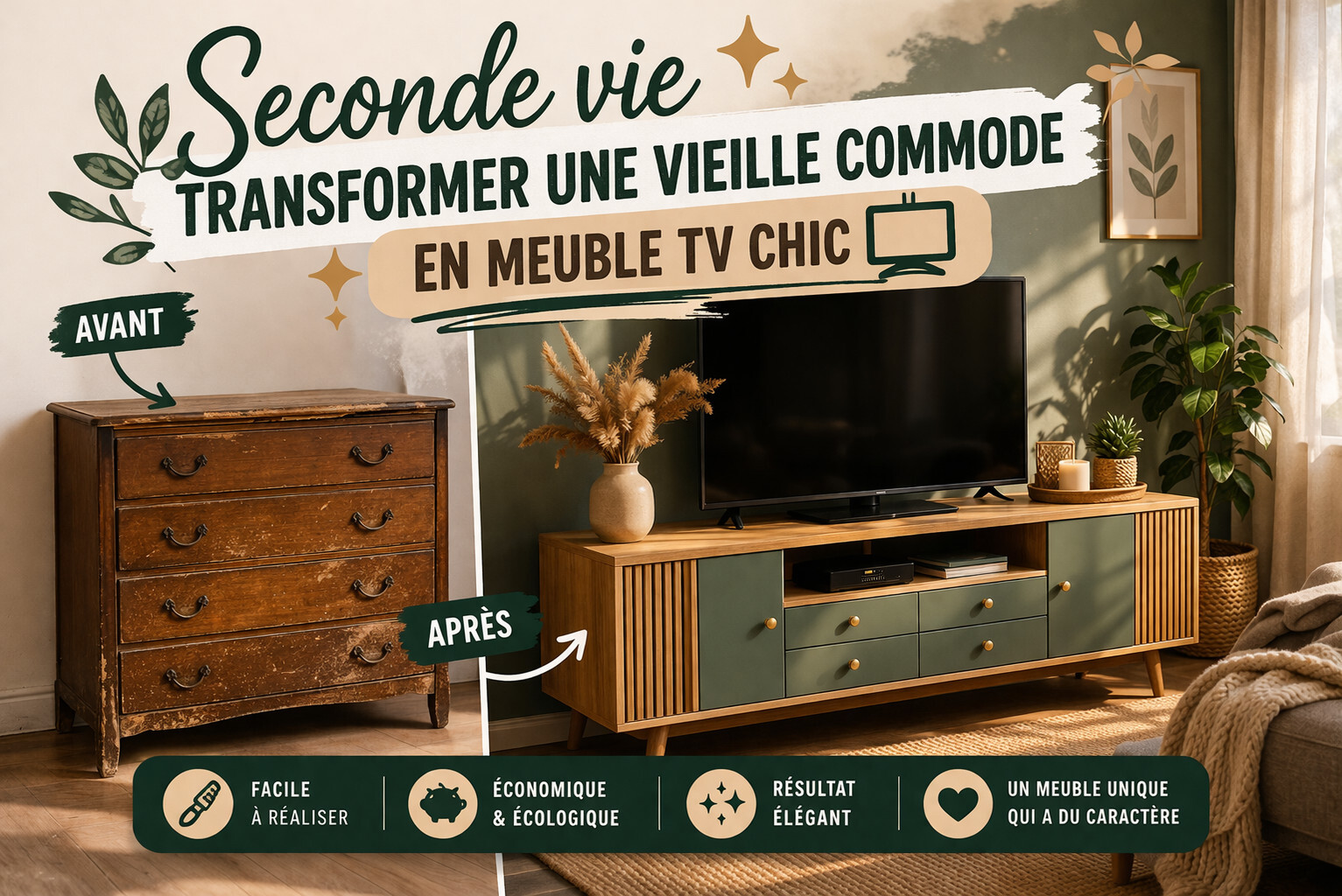 Les 10 étapes pour transformer une vieille commode en meuble TV chic 🪵📺